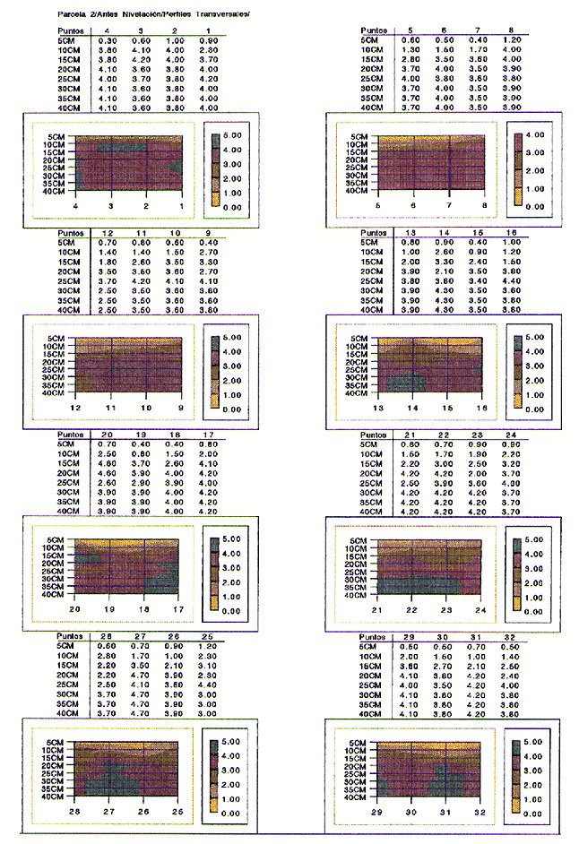 L'augment important del parc de maquinària i equipament agrícola, pot conduir al llarg del temps a una degradació del sòl quant a: erosió, compactació, disminució de la velocitat de infiltració i restricció del creixement radicular. <br/>Referent a la compactació del sòl en terres de conreu, s'ha de tenir en compte que les passades successives de la maquinària origina en la capa llauradissa una disminució en els rendiments dels conreus. <br/>El tractar de trencar aquesta capa llauradissa amb llavorament profund i amb passades de llavorament superficial originen altres recompactació que es poden transmetre a més profunditat. Aquesta compactació en profunditat es denomina "sola de labor". <br/>L'anivellació amb radiació làser en la comarca del Pla d'Urgell (Lleida) és un sistema d'anivellació d'ús comú en aquesta comarca. En la recopilació d'aquestes niveladoras per a fer un seguiment i poder decidir la més idònia a nostres fins, ens vam trobar que en la mateixa zona, estan treballant diverses anivelladores amb un rendiment acceptable. S'ha de tenir en compte que el període anual d'utilització d'aquestes anivellacions es restringeix als mesos de maig a novembre per qüestions de calendari de reg o bé circumstàncies climatològiques.